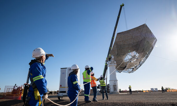 The Square Kilometre Array Observatory has hoisted the first collection dish of its vast radio telescope into position in South Africa’s Karoo semi-desert.